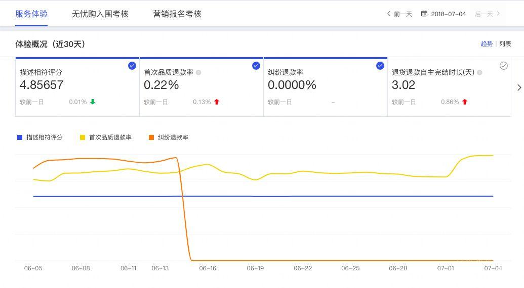 另外,这款工具已经和阿里巴巴集团客户体验部的“无忧购”和营销活动入围考核打通,并通过将店铺服务体验数据化,让掌柜更好地了解自己店铺在服务体验层面的状况。