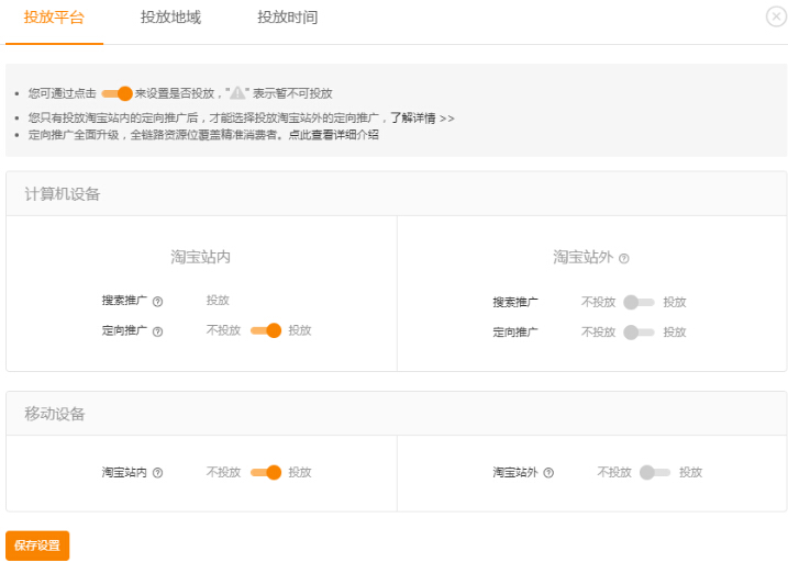 接着设置好投放平台、地域、时间、