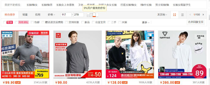 价格是标签因素之一,比如我们店铺宝贝的价格主要在100左右,面向工薪阶层。突然上架了一款千元以上的宝贝,那么这款宝贝的数据肯定不会太好。因为商品价格超过了客户的心里价位。一个经常购买100元左右商品的人,他不他可能在同类商品里选择千元以上的。所以我们选择的宝贝价格不要差距太大,尽量在一个价格带。