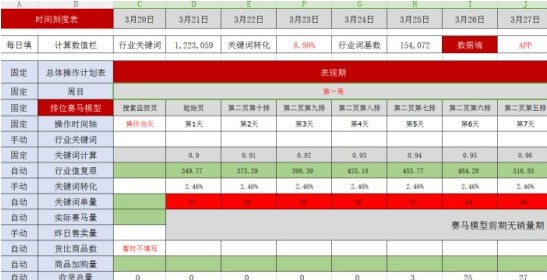 各位可以看到我们通过数据分析,得到单量,然后我们要进行一个换算,我们的订单基本上到第一页才能卖,所有这个基本上是你的总数量,那么我们要进行优化几天呢,建议15天,主要按照关键词反馈就可以了。