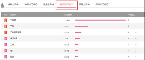 首先,打开淘宝排行榜,然后找到“工作制服”这个类目,女装类目和男装类目里面都有,你的目的是找到相关的关键词: