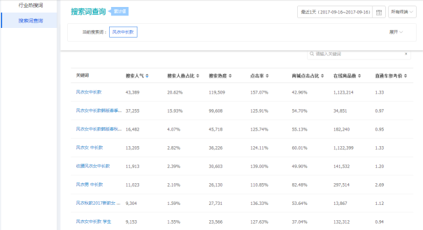 要想直通车有明显效果,首先就要从关键词入手,对于老手来说选取关键词都是轻车熟路,从后台推荐、生意参谋或者自己组合等,找到更多具有竞争优势的关键词,并且要多注意淘宝的变化,随时发现飙升词。找到关键词后,我们还要进行数据分析,从数据的对比分析中解析出该关键词的近期走势,是否有投放的潜力,这个需要我们自己去判断。