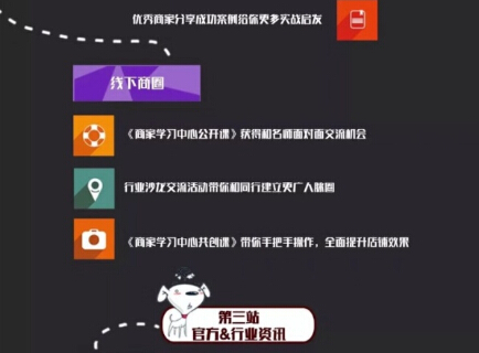 《商家学习中心公开课》获得和名师面对面交流机会,行业沙龙交流活动带你和同行建立更广人脉圈,《商家学习中心共创课》带你把手操作,全面提升店铺效果。