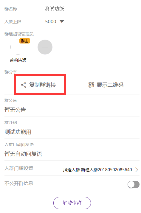 第二步,开始创建一个群,选择指定人群才能入群,人群就选择刚刚我们创建的标签人群。
