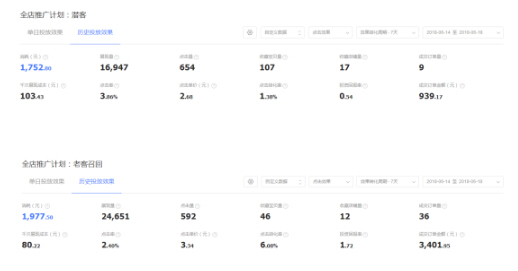 有人说这数据一般呀,那可以看下这是点击效果,不是展现效果。绝大多数店铺都是展现效果,相对来说这是个假象。然后我们会神奇的发现这家店铺拉新的数据比做潜客和老客效果还好,这个就是后面需要总结分析的店,继续优化保持的当然是拉新。对于钻石展位的推广想要好的效果,一定是涉及到营销,而不仅仅是硬广和定向人群的事情那么简单。